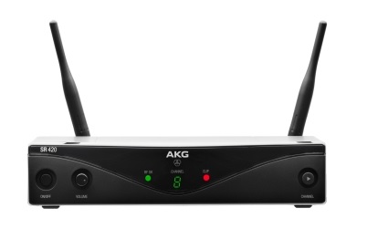 The entire WMS420 wireless system consists of the SR420 stationary receiver, HT420 handheld transmitter and the PT420 pocket transmitter. The HT420 handheld transmitter is available with the patented D5 dynamic microphone acoustic. This capsule guarantees maximum rejection against feedback, reduced handling noise and the famous AKG sound. Both transmitters are shipped with charging contacts that enable the use of rechargeable batteries. Moreover the transmitters offer exceptional eight hours of operation time from a single AA size battery, which dramatically reduces the operating costs in day-to-day use.