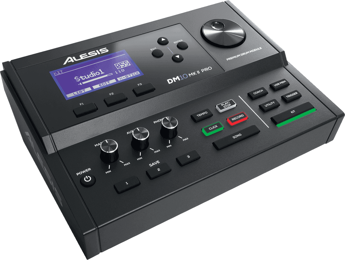 Electronic drum kit & set ALESIS Dm10 mkii pro kit. The Alesis DM10 MKII Pro Kit is a premium ten-piece electronic drum set with our exclusive Alesis dual-zone mesh drum heads (U.S. Patent 9,424,827) that deliver an unprecedented degree of realistic drum “feel” and personal expression for modern electronic drummers. These ultra-quiet mesh drum heads come closer to duplicating the feel of an acoustic drum head and their natural rebound better than any previous Alesis electronic drum kit. The Alesis mesh drum heads have a precise adjustment knob so drummers can adjust the heads to provide the exact response that best suits their playing style.