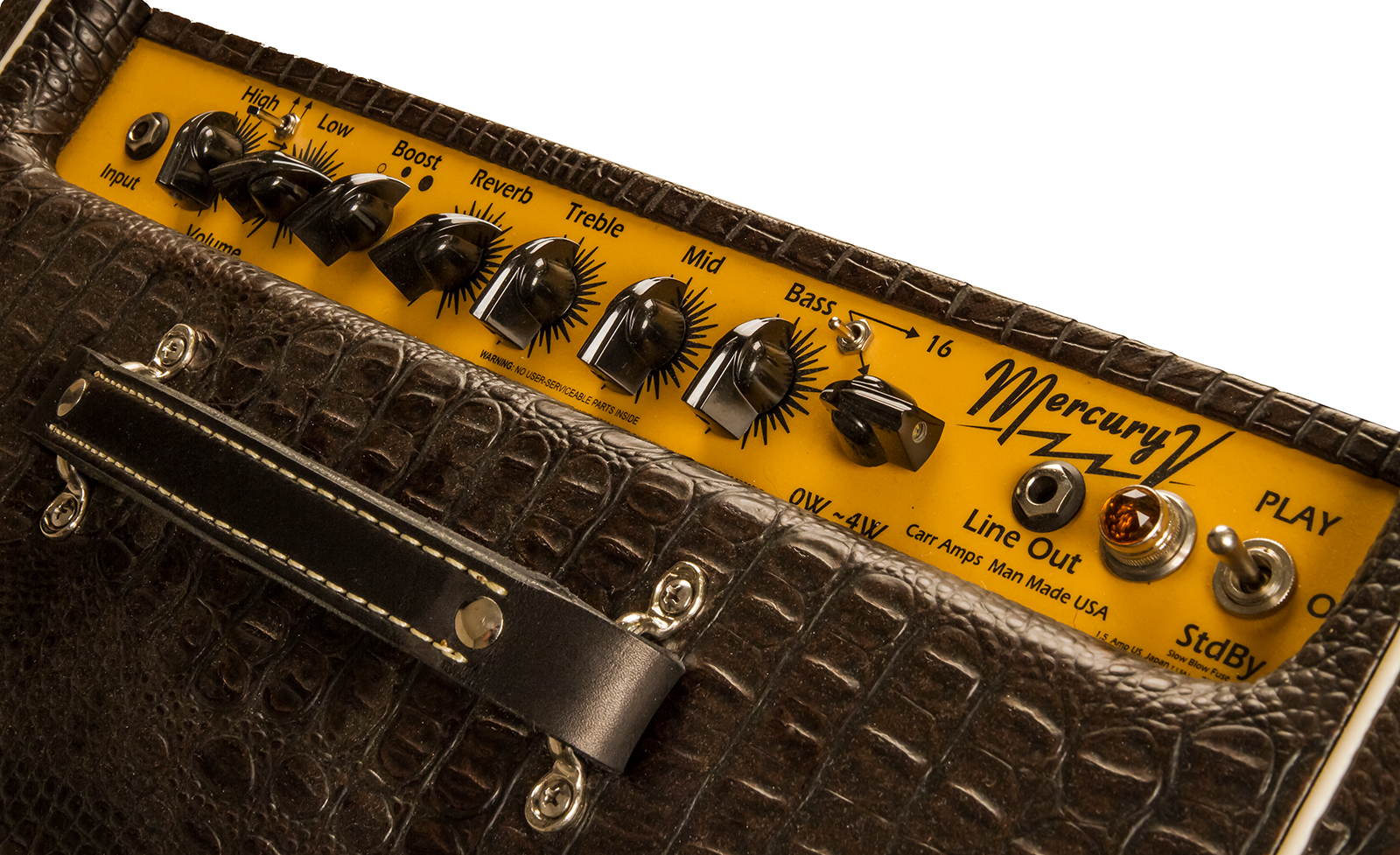 The CARR AMPS Mercury V 1-12 Combo Brown Gator for electric guitar reinvents a long-standing Carr platform to deliver snarling Marshall-esque British tones with a highly evolved feature set and surprising versatility.