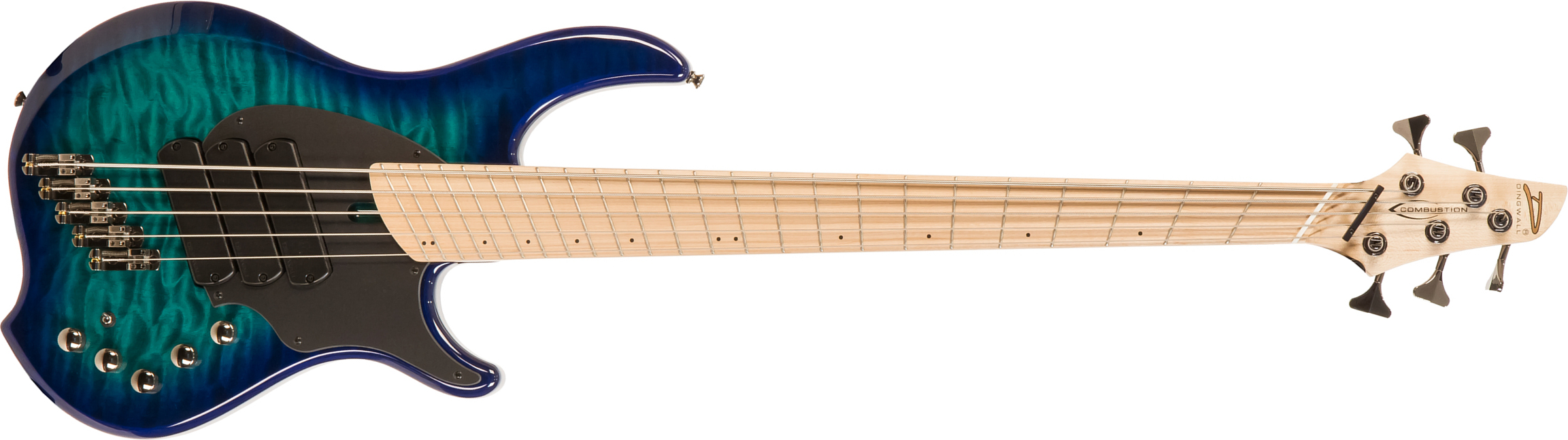 DINGWALL Combustion 5 3-Pickups (MN, WBT) is a solid body electric 5-string bass with active/passive EMG electronics, Alder body, high stability 5-pieces Maple neck, 24 fan frettes multi-scale fingerboard.