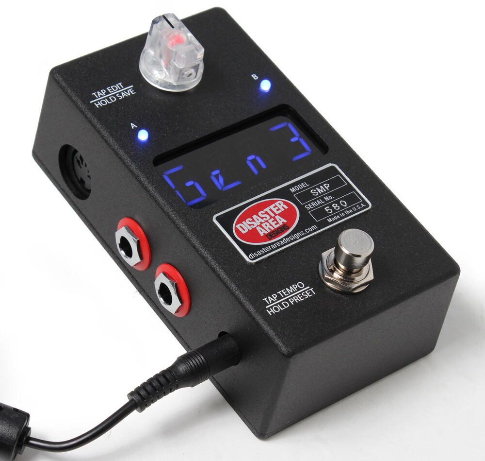 From 30-300 beats per minute, DISASTER AREA SMARTClock Gen3 MIDI Controller is a programmable (128 presets) tap tempo and clock generator for your rig, allowing to synchronize up to four separate tap-tempo devices plus multiple MIDI-clock capable units.