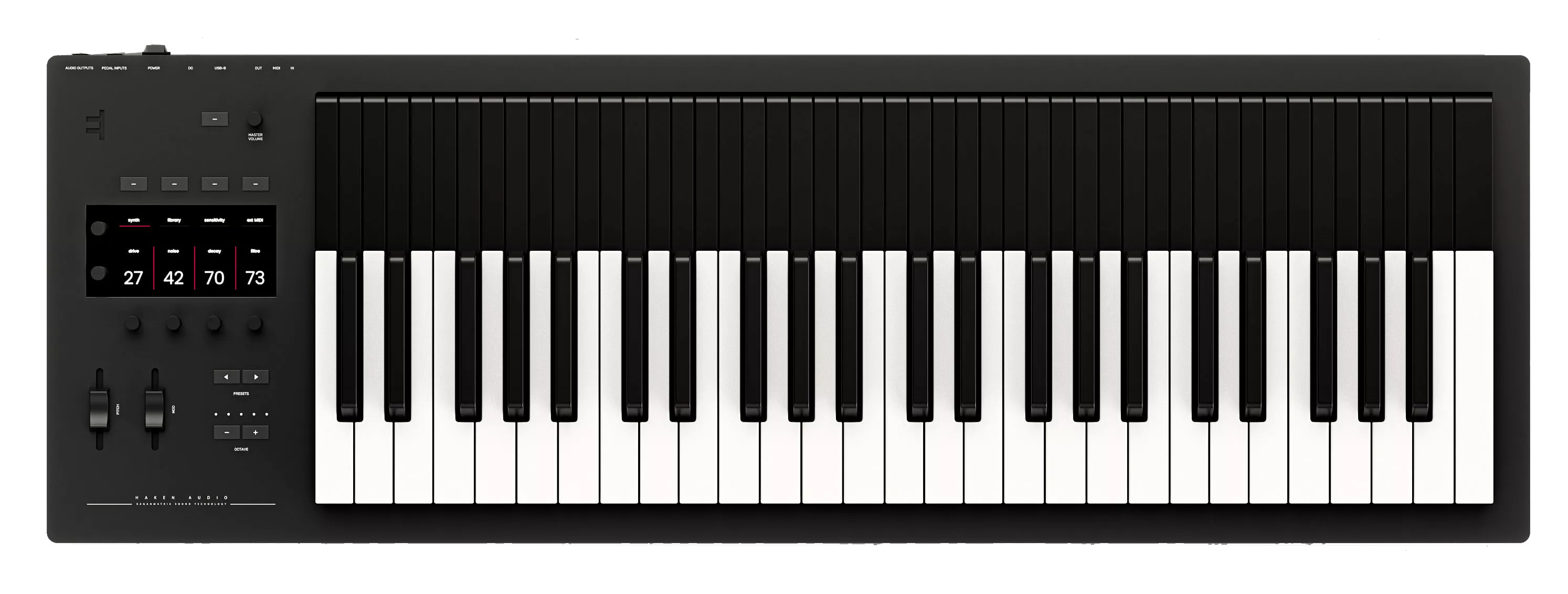 - 49 full-size keys with A.K.A. technology