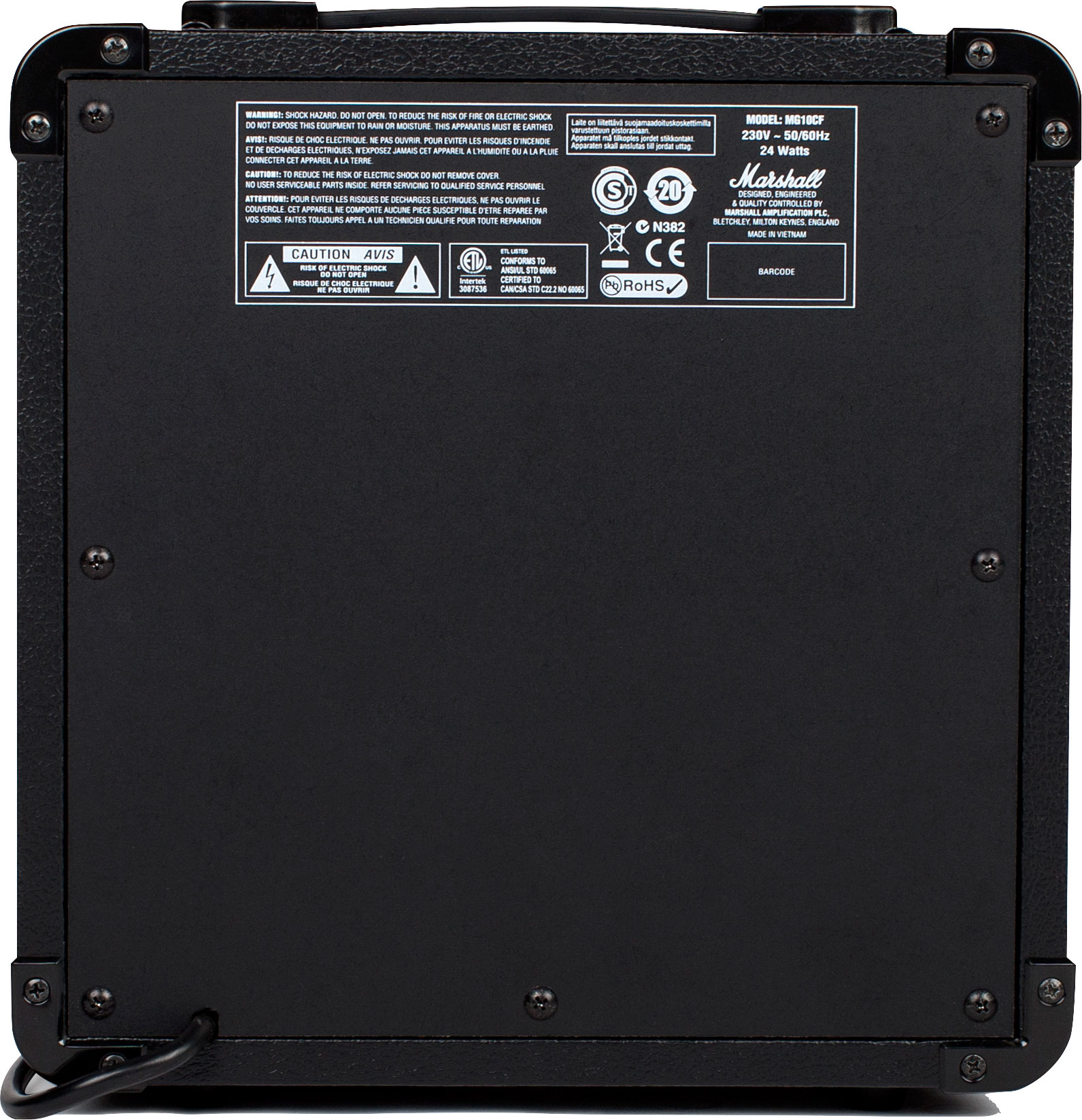 The Marshall MG10 solid-state electric guitar amplifier delivers 10 watts RMS of huge Marshall guitar tone that can be dialled in from spanky clean to overdrive sounds with real punch.