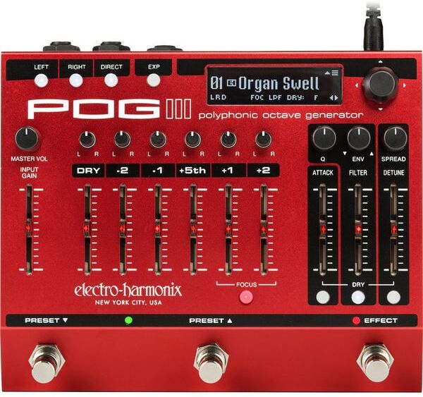 The legendary octave pedal gets a makeover with the release of the POG3! Known for its ultra-fast polyphonic tracking, the Electro-Harmonix POG has been adopted by musicians around the world to produce unique and captivating octave effects.