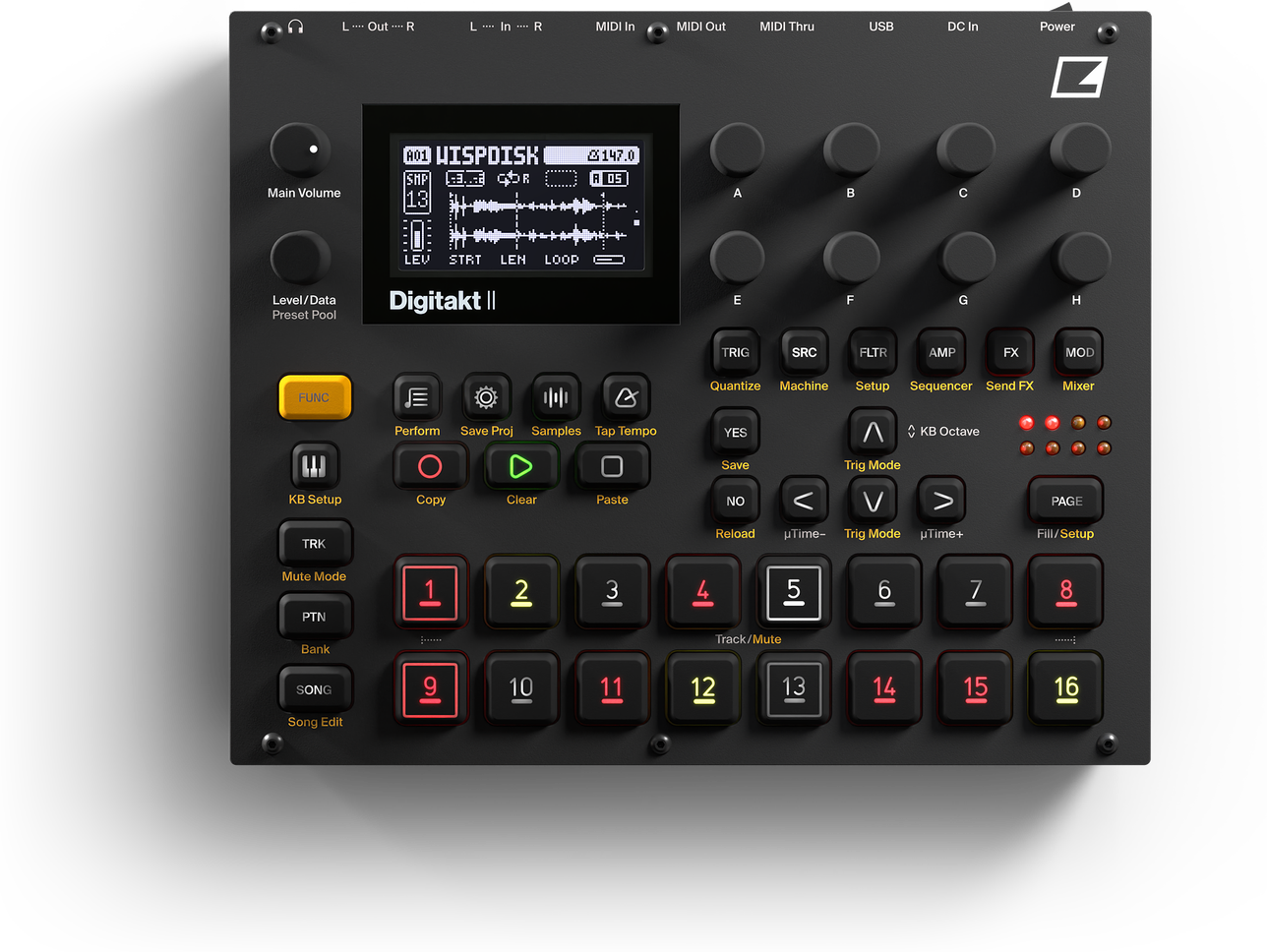 The Digitakt II is much more than just a drum machine: it's a powerful tool that can turn your musical ideas into reality. Discover a world of varied and enriched sounds thanks to a large sample selection and extensive memory.