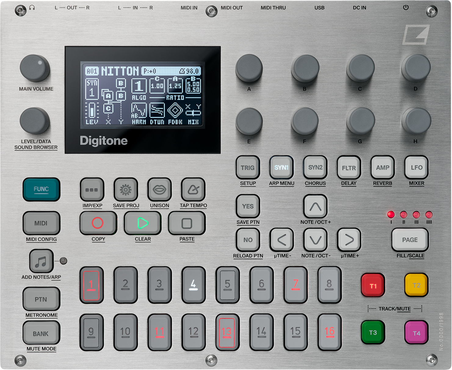 Digitone is a very special eight voice digital synthesizer. It combines a modernized FM implementation with a classic subtractive synthesis signal flow, making it a powerful source of highly unique tones and timbres. The FM sound generators have been optimized for a clean and efficient sound design process. Turn a few knobs and something interesting and musically relevant is bound to happen.