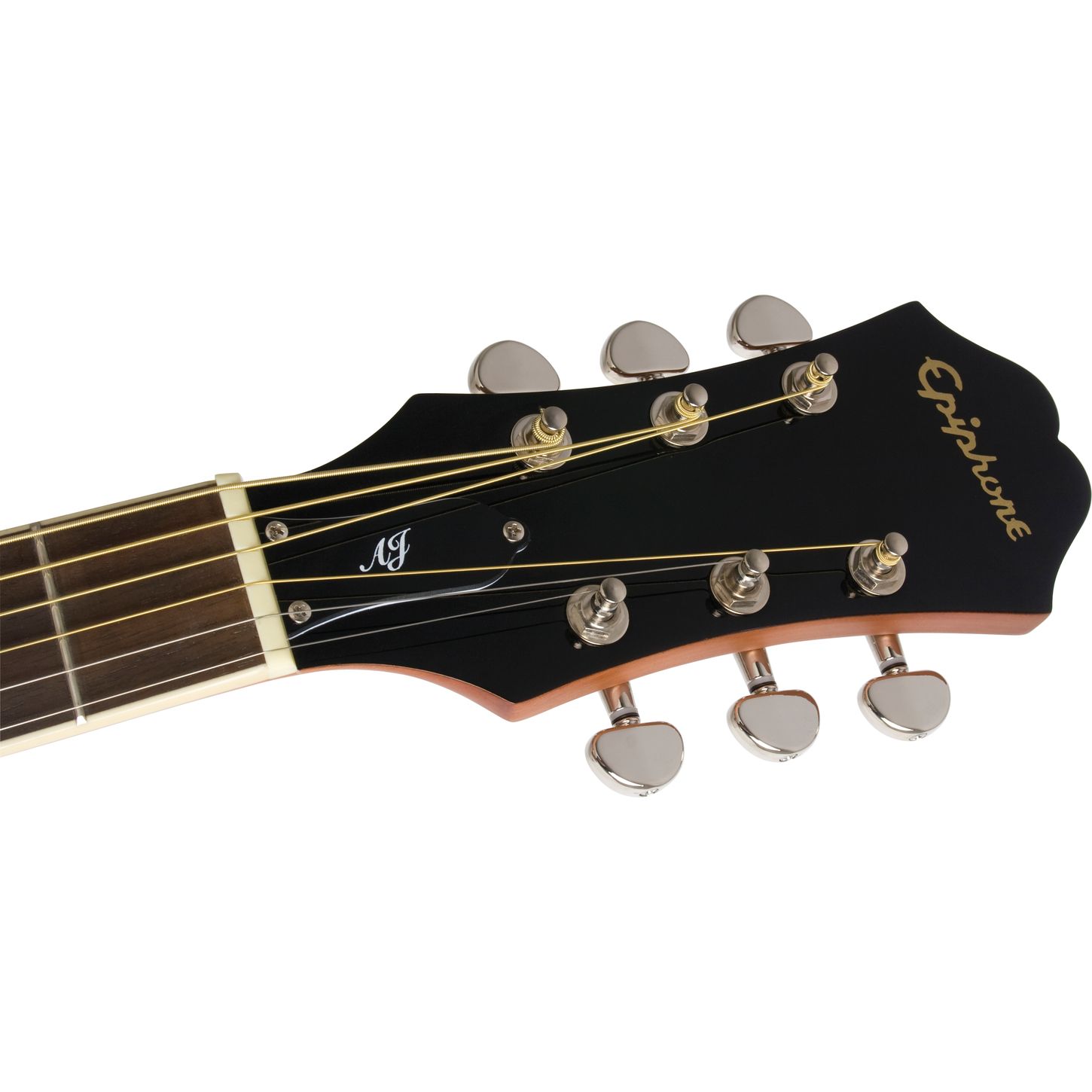The EPIPHONE AJ-220S (EA22VSNH3) solid Spruce top acoustic guitar (layered Mahogany back/sides), features the classic ‘Advanced Jumbo’ style body with a top of solid Sitka Spruce (Natural, Vintage Sunburst, Trans Blue finish) or a solid Mahogany top in Mahogany Burst.