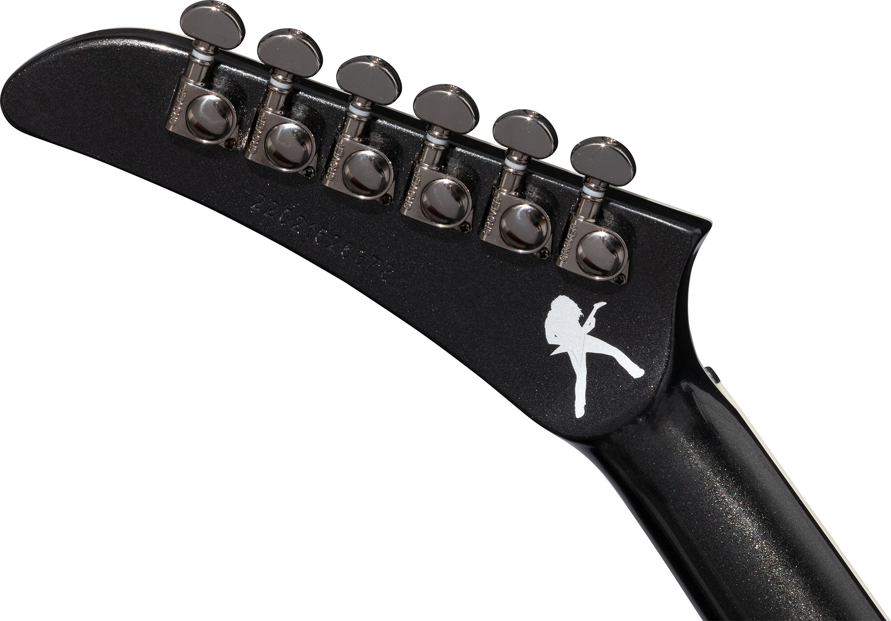jumbo frets, an Explorer™-style headstock with Grover® Mini Rotomatic® tuners, and a Graph Tech® nut. The mahogany Flying V-style body is equipped with a LockTone™ Tune-O-Matic™ bridge, string-thru Flying V tailpiece, and Dave's signature Seymour Duncan® Thrash Factor pickups that deliver all the high-output mayhem you'd expect from a Mustaine signature axe.