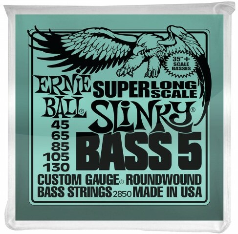 Ernie Ball 2850 Slinky Super Long Scale 45-130 Electric Bass Strings 5-String Set.