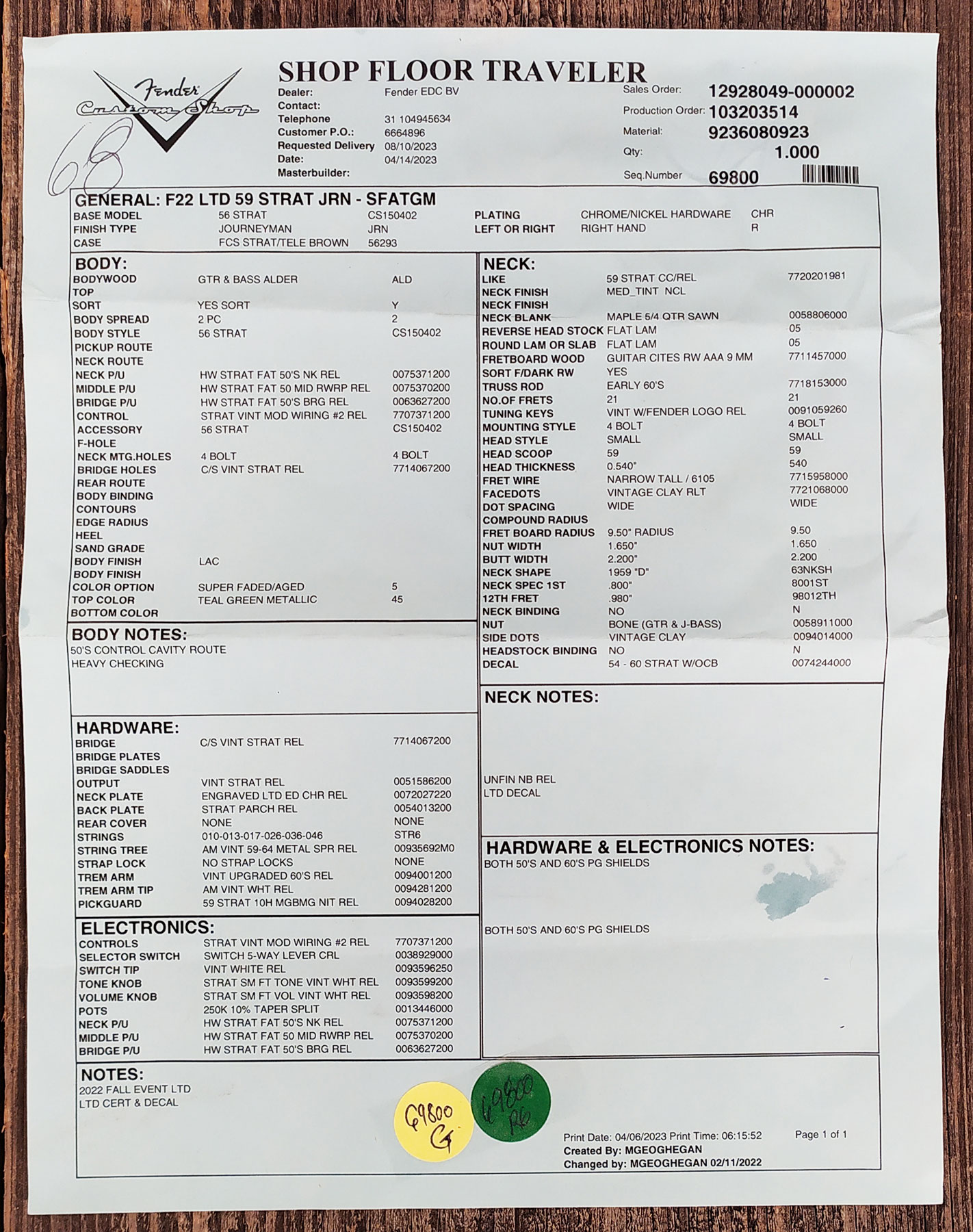 - FENDER Custom Shop 1959 Stratocaster Journeyman Relic
