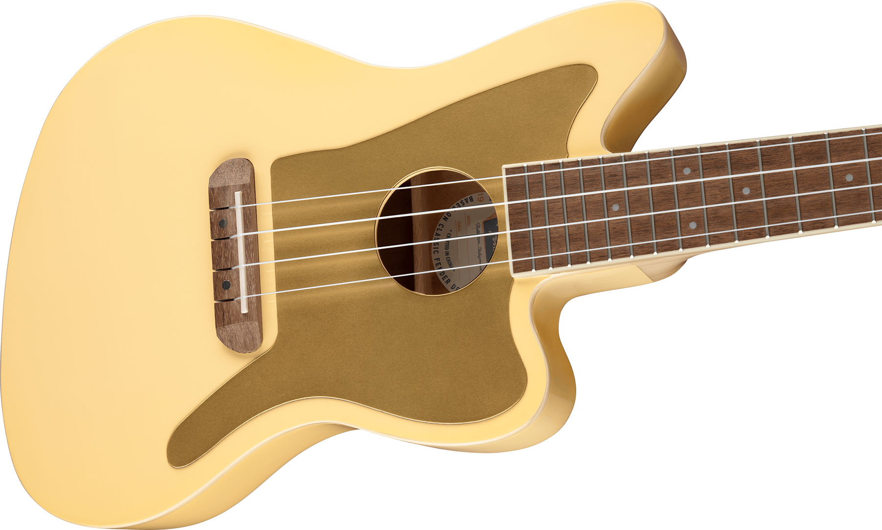 Inspired by the legendary Fender shape, FENDER FSR Fullerton Jazzmaster Uke (0971933541) is an appealing acoustic/electric concert ukulele.