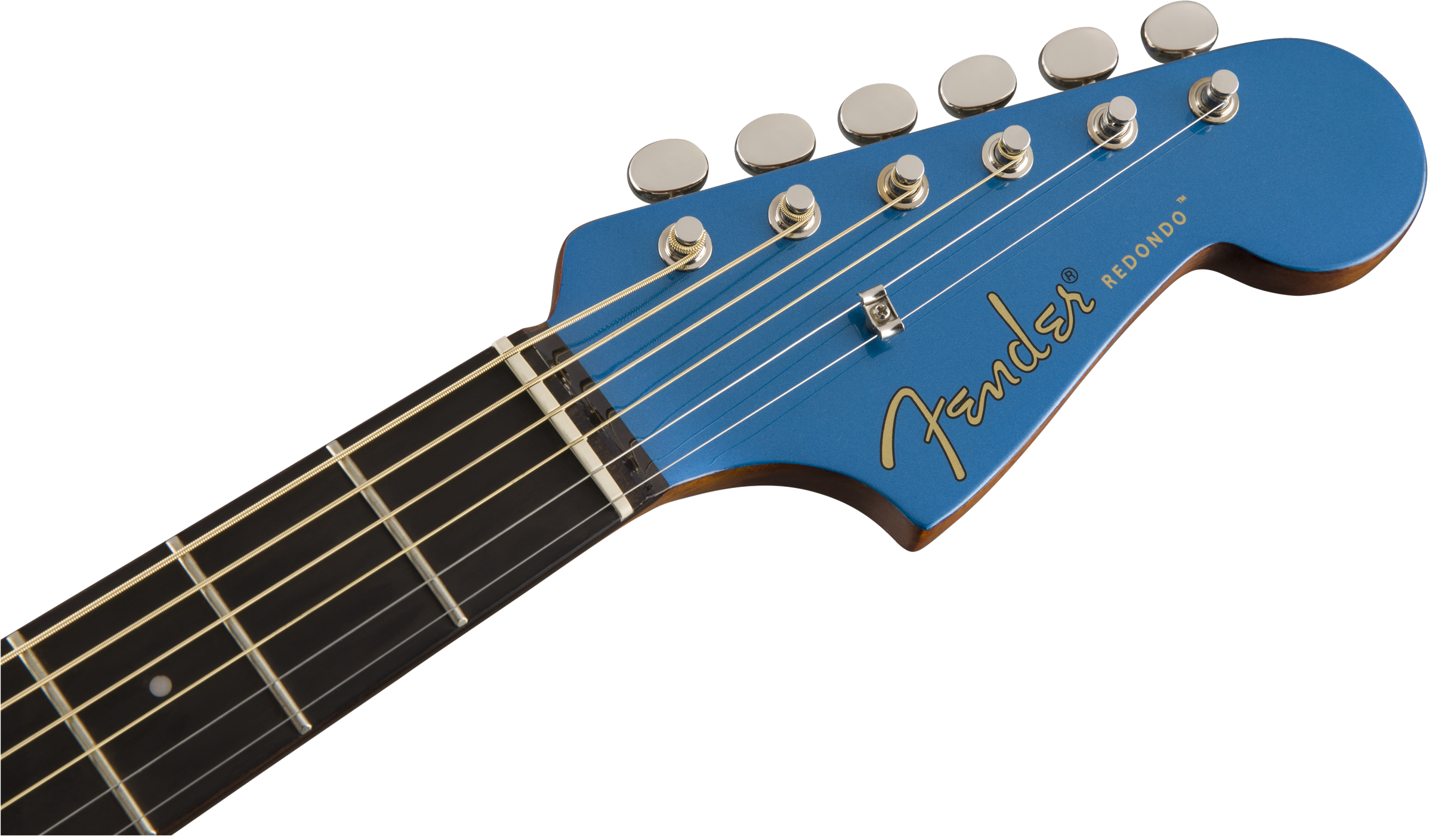 Bold and brash, the chest-thumping sound of this big-bodied Fender Redondo acoustic was designed to inspire from the moment you pick it up. The exclusive slope-shouldered Redondo body shape has a rich, commanding voice that fills any room. The gloss metallic top, back and sides, as well as a matching painted 6-in-line headstock and crème binding, give it a shot of electrifying attitude. Dynamic, unique and unconventional—like today’s guitarists—the Redondo Player refuses to be bound by the past.