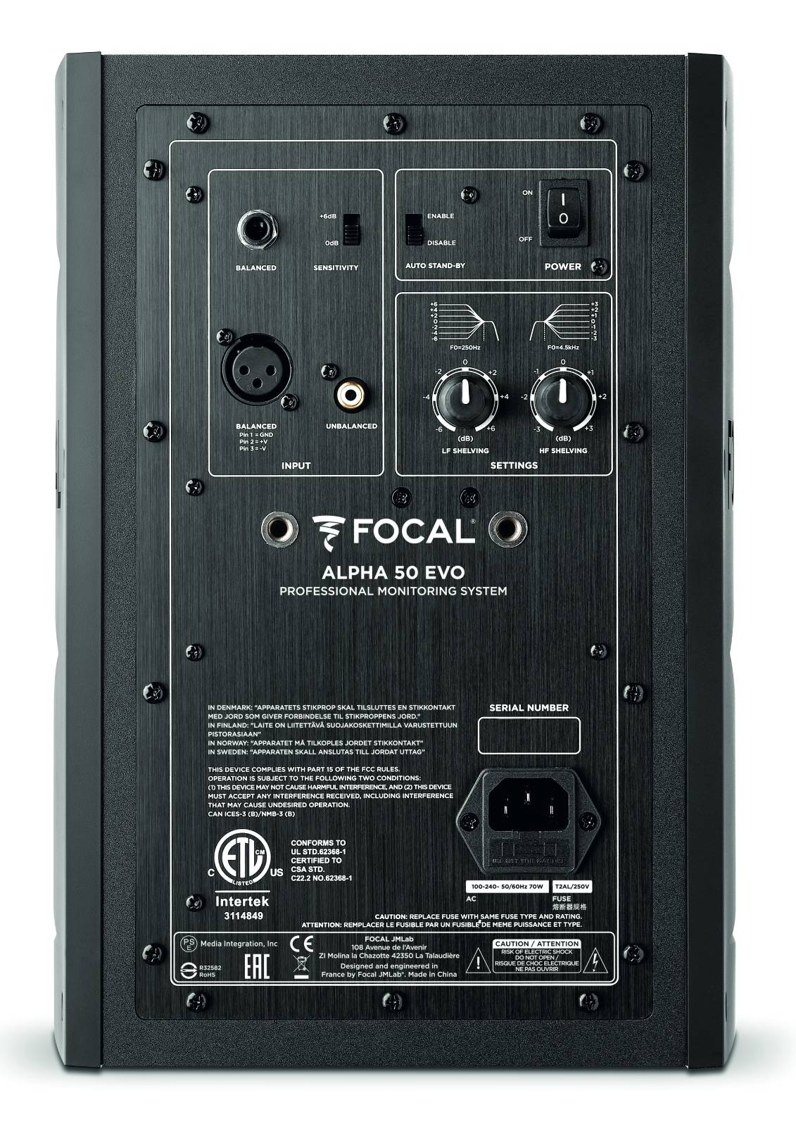 Alpha 50 Evo is equipped with a 25 mm (1") Aluminum tweeter and a 13 cm (5") Slatefiber woofer, a membrane developed and manufactured in Focal's workshops in France. This monitoring loudspeaker is characterized by excellent dynamics and neutrality of tonal balance. Thanks to new technologies and features, Alpha 50 Evo offers a very great versatility.