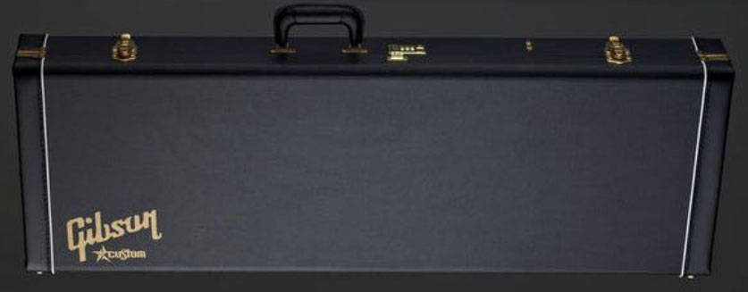 The classic vintage Explorer features have been carefully recreated in this GIBSON Custom Shop 1958 Mahogany Explorer Reissue (EXM58VOWLGH1) Historic Reissue model. Featuring an ABR-1 bridge and Stop Bar tailpiece, a Mahogany body, Custombucker pickups, Mahogany neck, Indian rosewood fretboard, two volume and one tone control with CTS® pots and a phone book capacitor, gold hardware, Kluson® tuners, and a 4-ply black pickguard. A historically accurate case is included, with a classic brown exterior and plush pink interior.