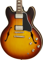 The Historic Reissue ES-335 is back and better than ever, thanks to a year of studying, scanning, and listening to original examples. The expert craftspeople at Gibson Custom Shop have rendered every contour, profile, inlay, and color of the priceless vintage models in magnificent detail. The result is a playing and ownership experience that will keep you coming back for more. The 1959 ES™ Reissue models feature rounded cutaways, Medium C-shape neck profiles scanned from originals, dot inlays, and vintage-replica parts.