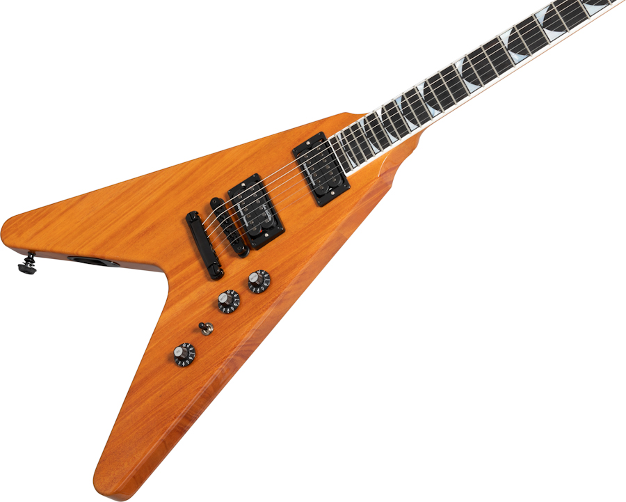 The mahogany Flying V-style body is equipped with a Tune-O-Matic™ bridge, a Stop Bar tailpiece, and a Dave Mustaine signature Seymour Duncan® Thrash Factor pickup set.
