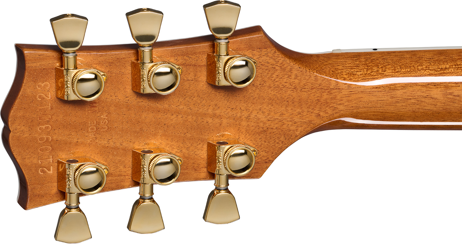 that take the ES™ to new heights of beauty, including a 3-ply body with a AAA figured maple top, Super Split Block mother-of-pearl neck inlays, gold hardware, and a striking mother-of-pearl headstock inlay inspired by a design from the 1940s that was discovered in the Gibson archives.