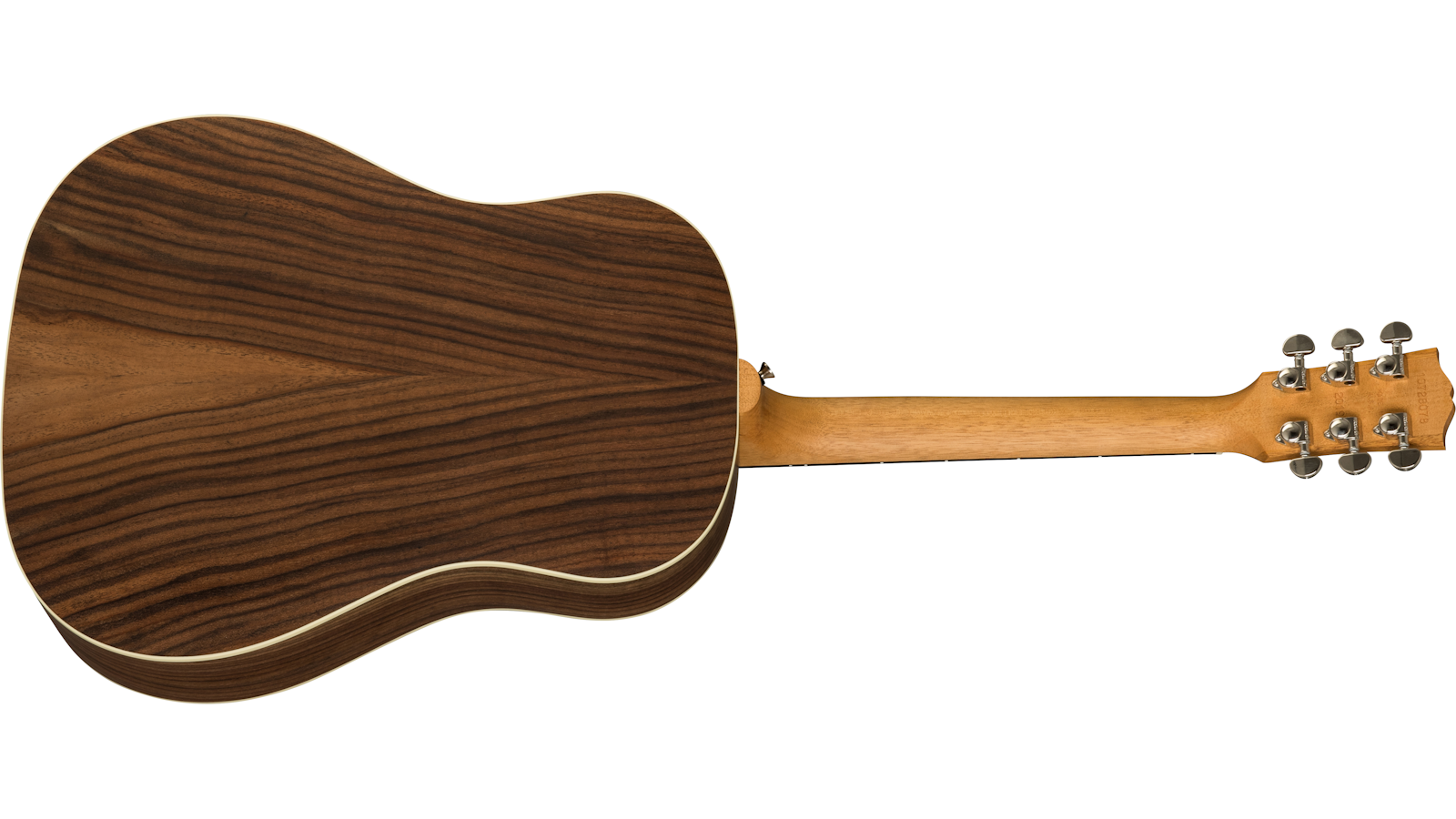 Built with the environment in mind and using responsibly harvested Walnut, Gibson built the GIBSON J-45 Sustainable (RS45SUN19) acoustic/electric Dreadnought Round Shoulders guitar, featuring Solid Sitka Spruce top, solid Walnut back/sides, and Richlite fingerboard and bridge containing materials made from recycled content and pulp derived from responsibly harvested trees.