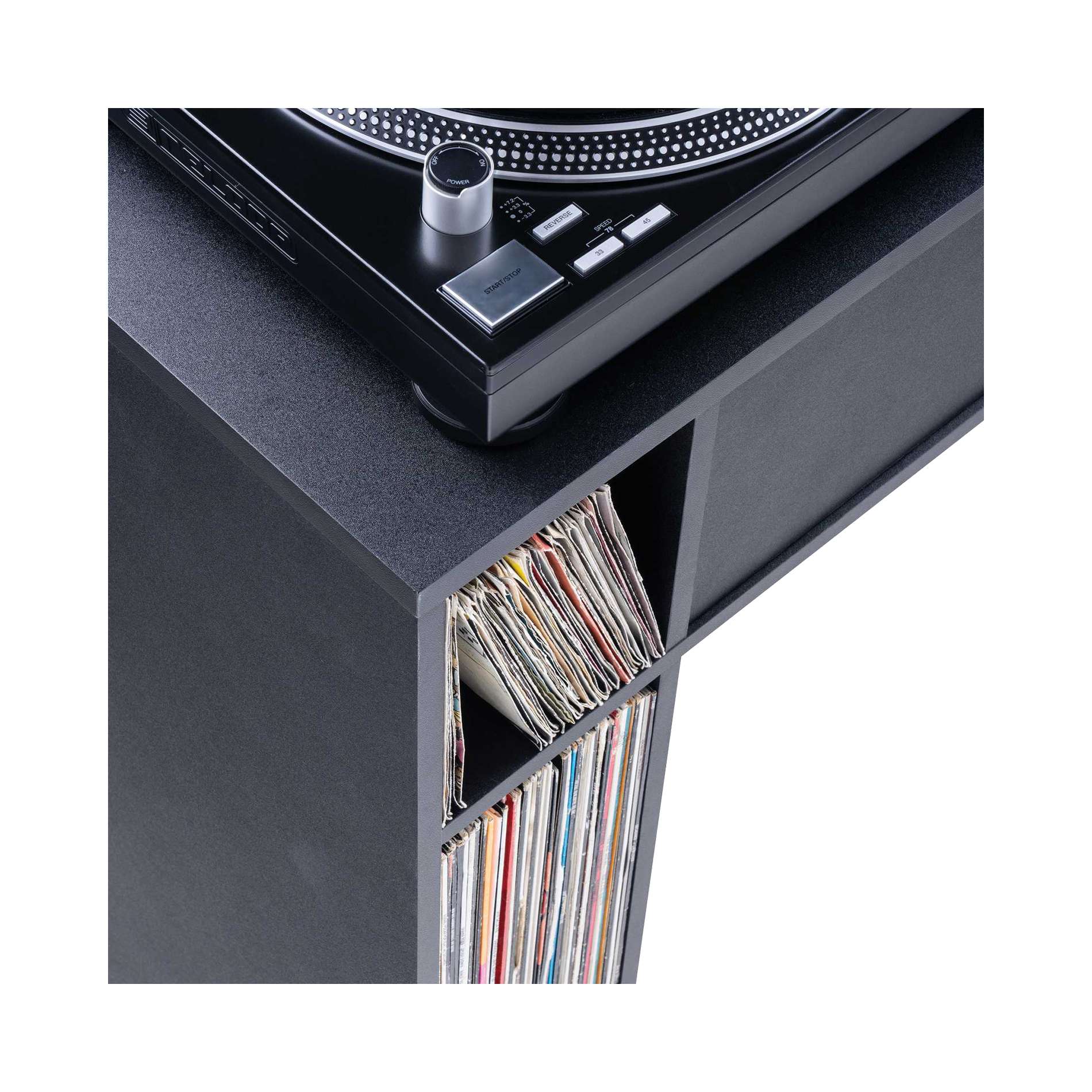 - Ideal as a DJ table with built-in vinyl storage