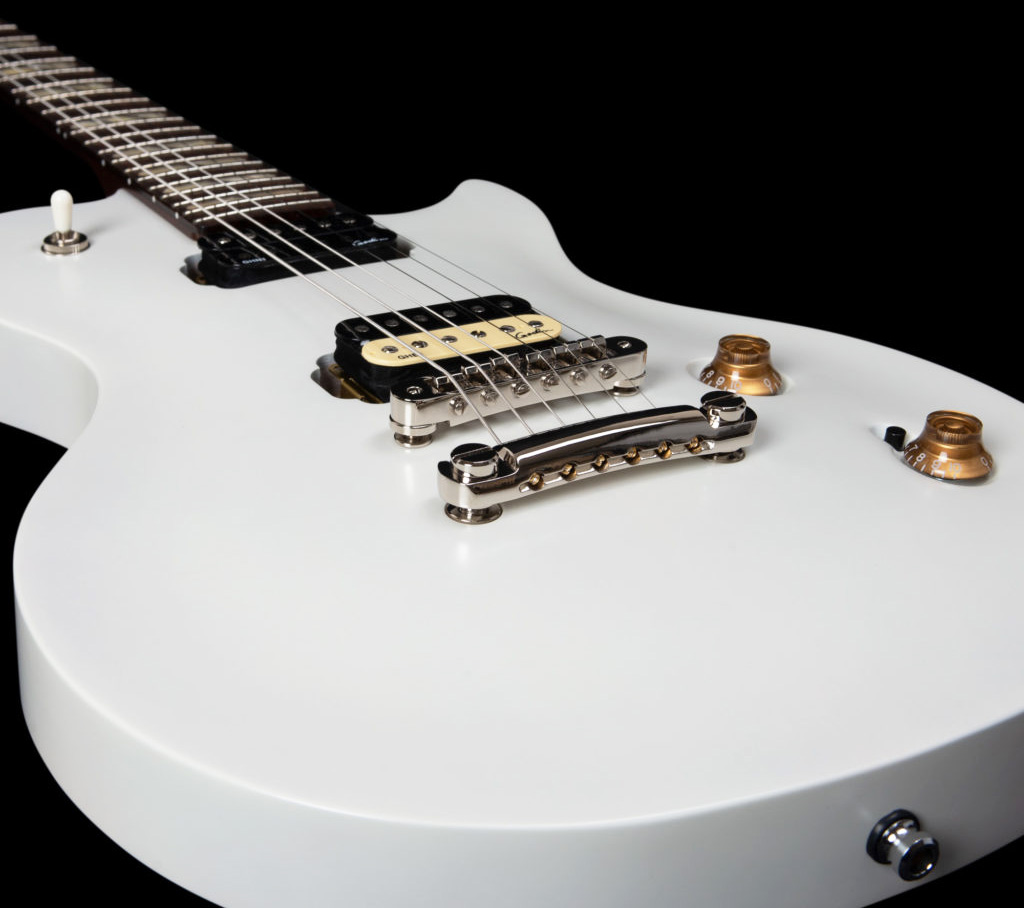 The chambered Canadian Laurentian Basswood body is not only vibrant and responsive, but extremely lightweight as well. In addition, the body has a Carved Maple top for added bite to your tone and a comfortable Silver Leaf Maple set-neck with Rosewood fretboard.