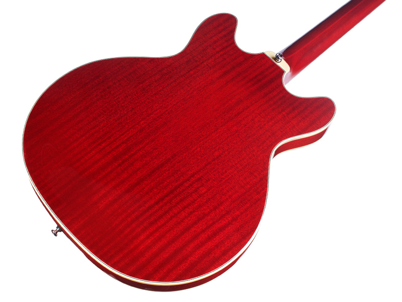 If you’re craving that 60s choral, jangly guitar tone defined by the Beatles and the Byrds, the Starfire IV ST 12-String both sounds and looks the part. Based on the popular Starfire IV ST, the GUILD Newark St. Collection Starfire IV 12-String (GU275) seli-hollow body electric guitar has the added power of 6 more strings! Premium features include an all-mahogany body, solid spruce center block, ebony fingerboard, and Guild’s hallmark mahogany neck with maple center seam. Instead of a harp tailpiece as seen on the first Guild electric 12-string (the Starfire XII made from ’66-’74), this modern version has a Tune-O-Matic bridge with a stopbar tailpiece for increased sustain and stability, imperative for keeping those extra strings in tune. The Starfire IV ST 12-String includes dual LB-1 “Little Bucker” pickups, replicas of Guild’s original smaller size humbucking pickups. It is available in Shoreline Mist & Cherry Red, and includes hardshell case.