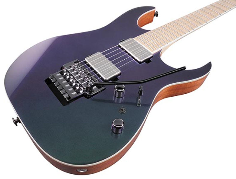 With a Mahogany body, Ash top, Maple set-neck/fingerboard and Fishman Fluence Modern (ceramic/alnico magnets, 2 voicings for each pickup), the IBANEZ Prestige Japan RG5120M PRT solid body electric merges magnificent aesthetics, highly versatile sounds and great playability.