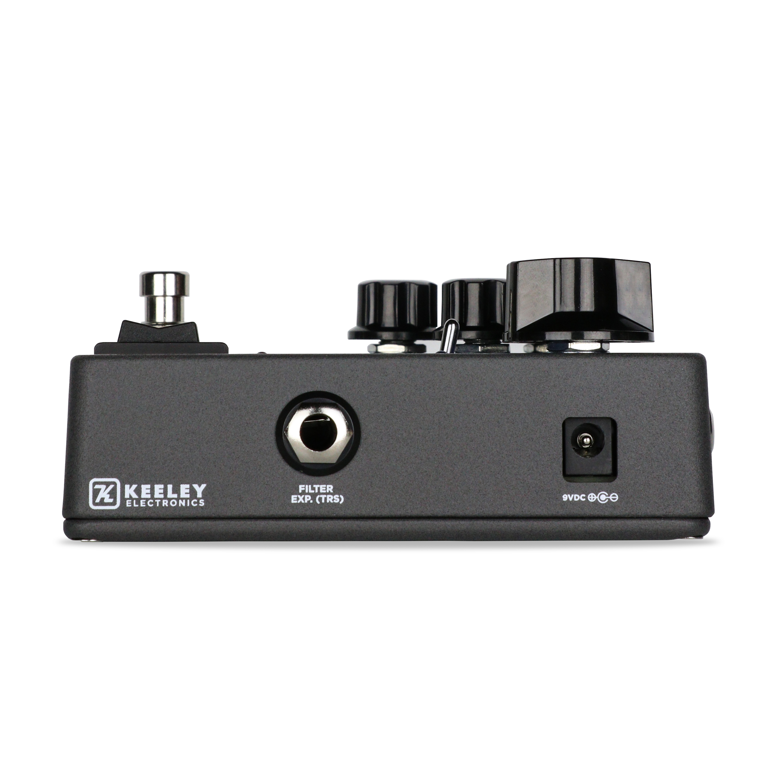 The Keeley Synth-1 is a guitar-triggered, single-note wave generator. You control the tone of the wave with the Filter Control. The lead-in time or swell of the note is controlled with the Attack knob. Then use the Blend control to remove the natural tone from your guitar as you slide through synth-sounding fuzz waves. Use an expression pedal to control the Filter, and now you have Wah-Wah-like control of the Synth-1.