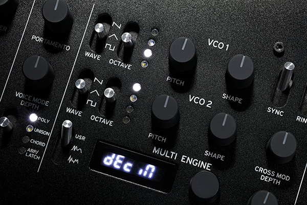 - 4 modes: polyphonic (four voices), unison, chord, arpeggiator/latch with Voice Mode - Depth function offering different parameters for each mode