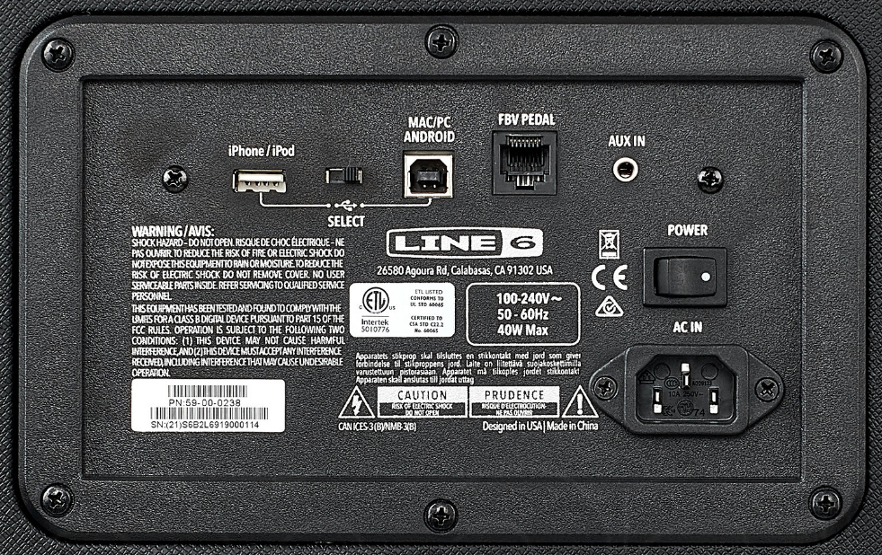 Two speaker modes available, Classic for electric guitars and Full Range for acoustic guitars or playing along with drum loops.