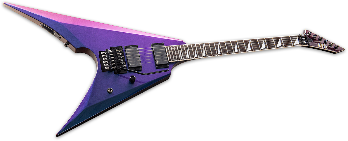 Completely unique in its bold design, the LTD Arrow-1000 VIA solid body electric guitar is an obvious choice for metal, hard rock, and other genres where it’s good to stand out from the crowd. This guitar’s sound is as aggressive as its looks, precisely crafted with a set-thru neck design, an Ebony fingerboard and a killer combination of EMG 81/85 active pickups. Included are high quality Grover tuners, a mahogany body, 3 pc. maple neck with a 24 extra jumbo fret pau ferro fingerboard for your fastest riffs and chunkiest rhythms.