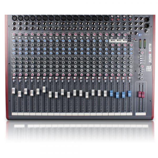 - 4 aux sends, level, pan, solo and overload/mute LEDs on each channel