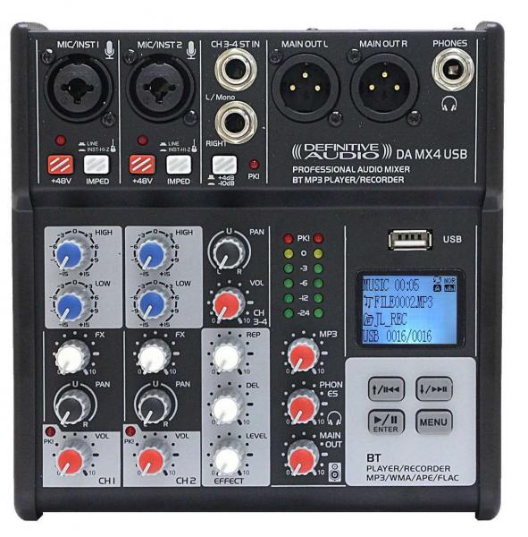 - 2 mic/line XLR inputs and 6.35mm (1/4 in) balanced jack with ajustable gain and 3 Eq. tapes.