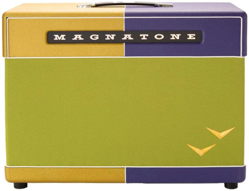 The MAGNATONE Master Collection Super Fifty-Nine 2X12 Cabinet Mardi Gras speaker extension is no exception to the Magnatone reputation for excellent build quality and amazing sound.