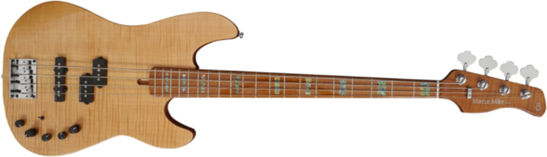 MARCUS MILLER P10 Alder 4-String (NT) solid body electric bass with active/passive preamp, is equipped with north american Alder body (opped with solid Maple and 5A Maple veneer), a wood of unusual quality at this price level ! It is highly resonant and offers a nice balance of pleasant highs, firm lows, and a beefy midrange.