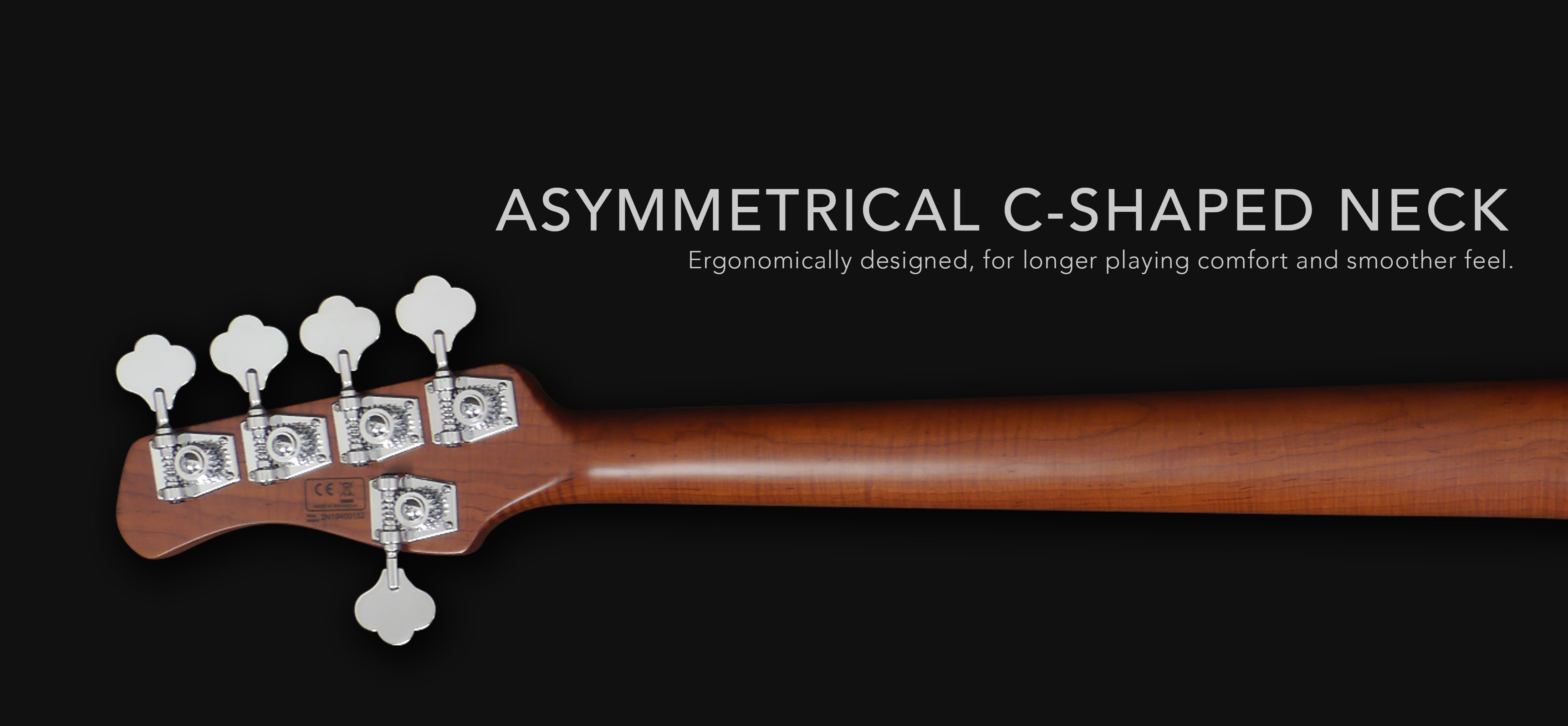 - Roasted Maple bolt on neck, "asymmetrical C" profile (rolled edges)