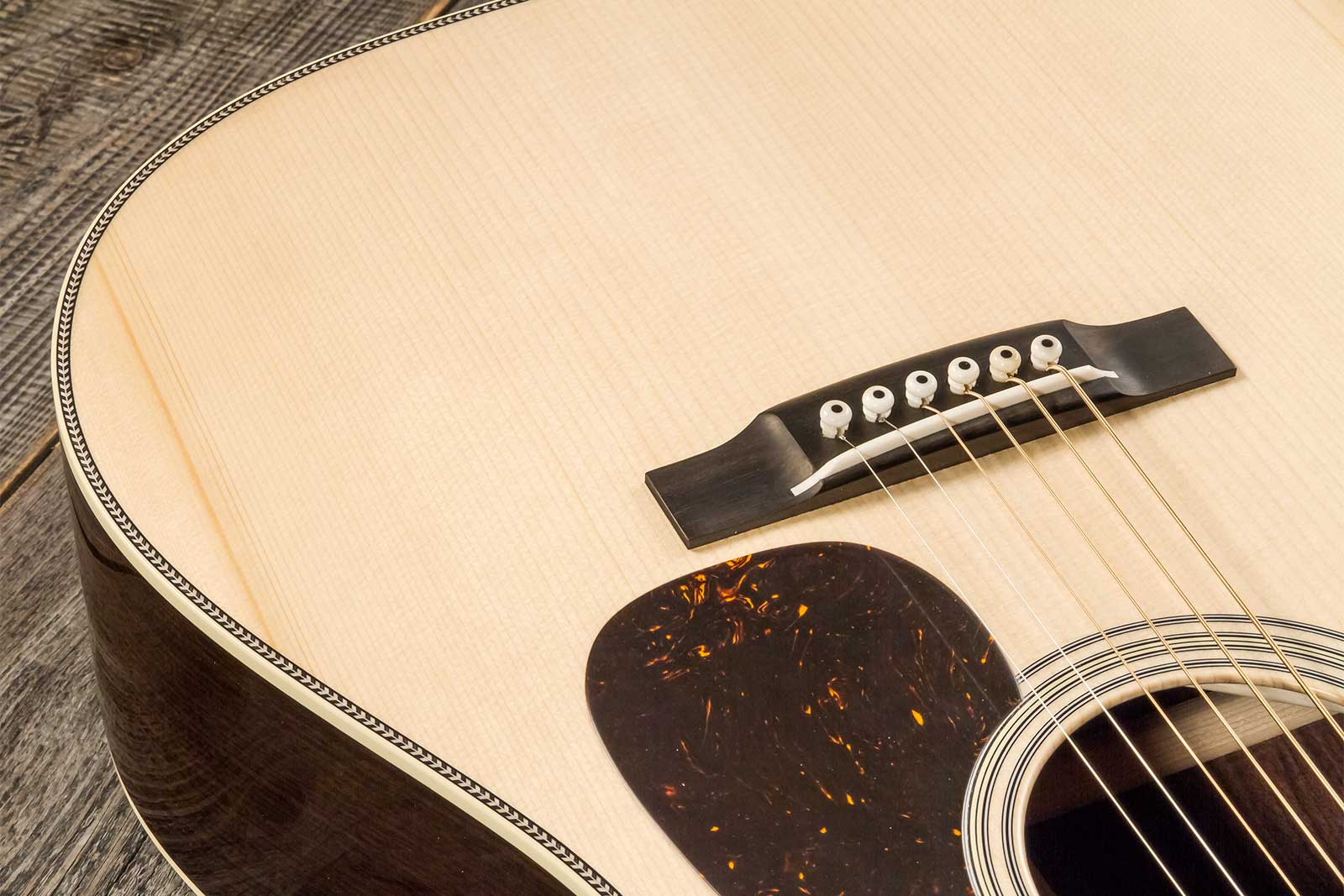 Visually, this Model takes advantage of Martin's proprietary Vintage Low Gloss process with a selection of craft-quality finishes. It is available in a natural or vintage Ambertone burst finish AND your preference of low-gloss or Stage 1 lightly aged finish. Lacking the heavy wear and tear of an instrument that’s seen considerable use, the Stage 1 finish with light cracking and crazing is inspired by those rare vintage instruments that were simply kept in the case and tucked away for decades. Stage 1 finish bears the marks of time but not the battle scars common on many vintage re-creations.