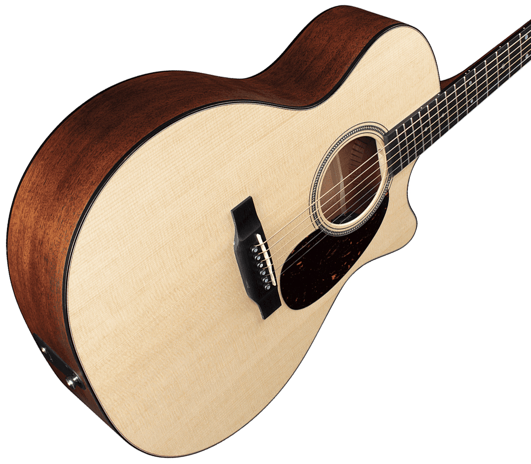 This MARTIN GUITAR GPC-16E Mahogany acoustic/electric guitar is a Grand Performance cutaway model featuring a solid Sitka Spruce gloss top, solid Mahogany back/sides and solid Ebony fretboard for balanced tone and projection.