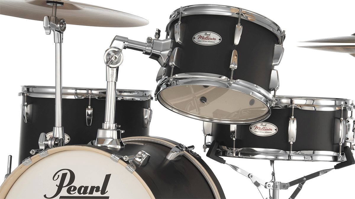 A complete, totally portable drum set costing less than many snare drums, the Midtown Series 4-pc. kit is ideal for an on-the-go beatmaking in a platform fit for tight spaces. Its compact 16x14 bass drum w/included riser and cymbal arm, 13x12 floor tom, 10x7 tom, and 13x5.5 snare deliver full-sized sound, while its included single-braced hardware pack is lightweight and rugged enough for easy transport and rapid set-up. At home on the street as well as on stage, Pearl's ultra-portable Midtown Kit is vital for the gigging drummer on the move. Available separately or with a padded gigbag set for drums.