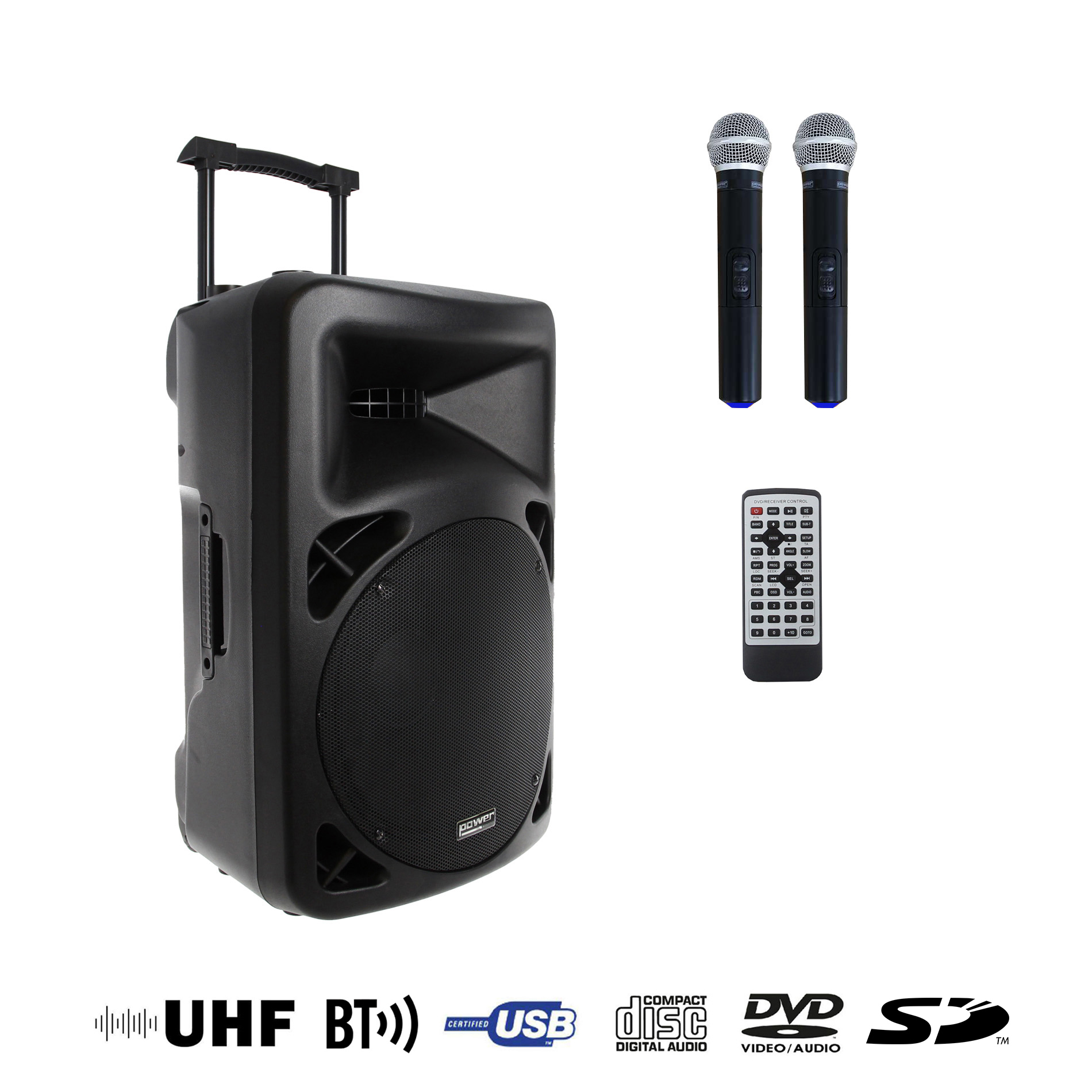 MP3/SD/USB/DIVX/Bluetooth CD player + 2 UHF handheld microphones.
