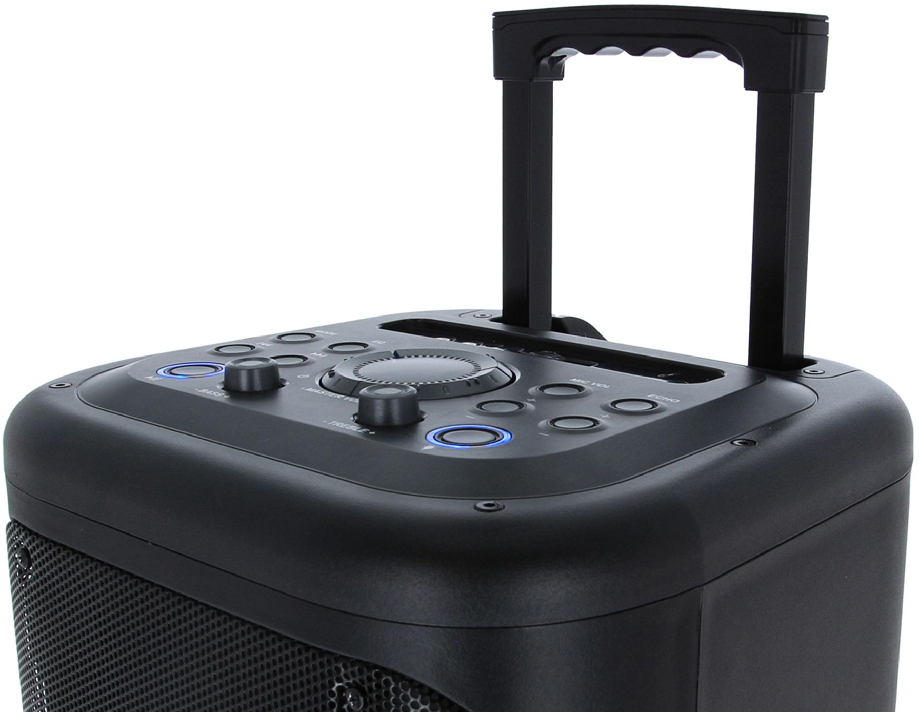 The GOFUN 200 is a versatile Bluetooth portable PA system with USB, SD card reader, AUX input, guitar input and wired microphone input. The front panel is equipped with multicolour LEDs for dynamic animation effects to the rhythm of the music. Several Light animation patterns.