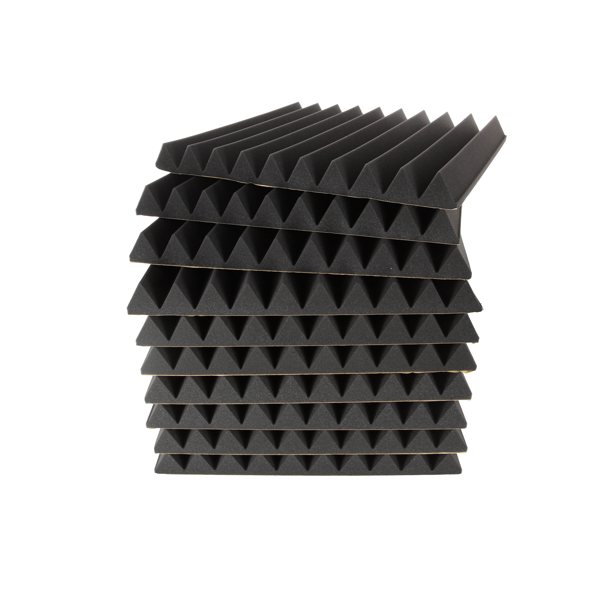 Dark grey acoustic foam with adhesive for quick and easy installation (sold in packs of 10). Acoustic foam for studio or home studio. Allows for better acoustics during sound recording.