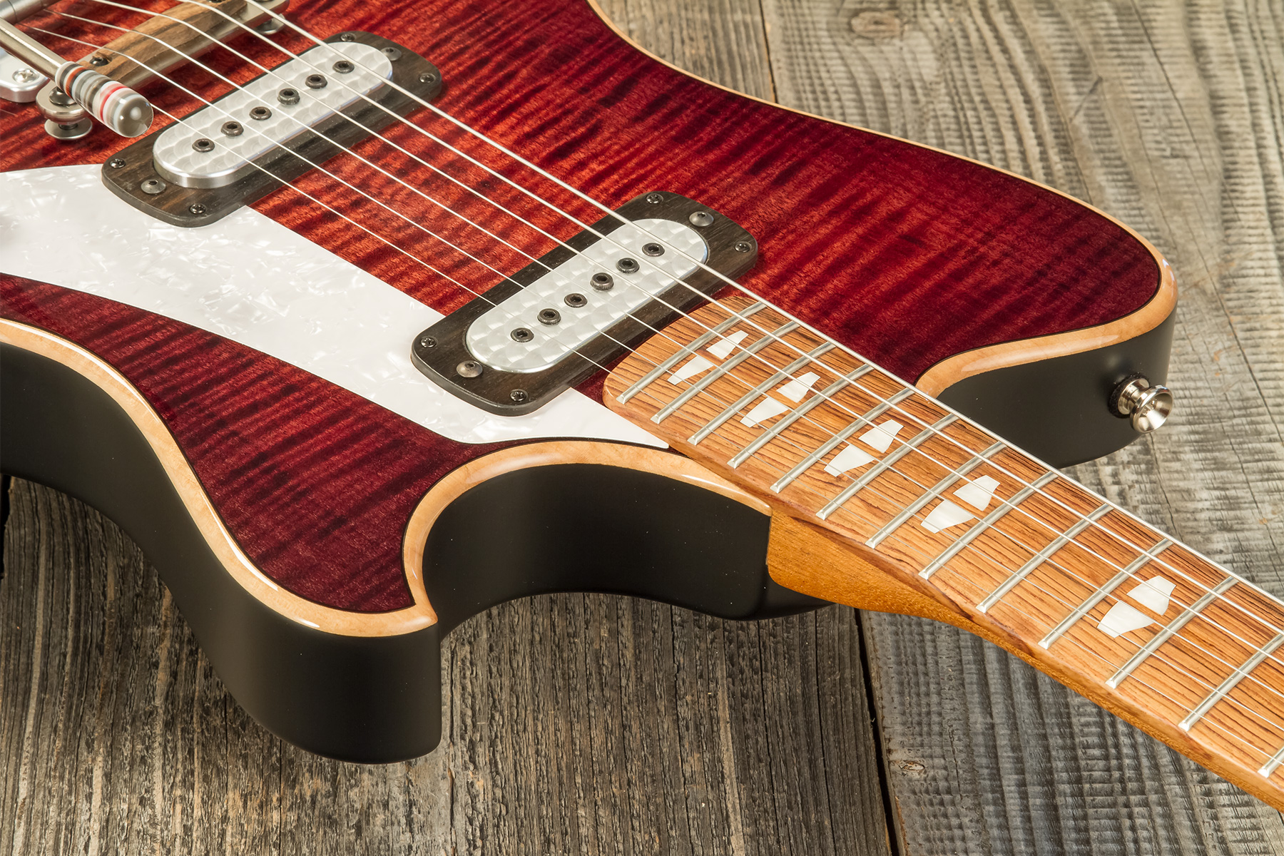 Like a surfboard or roadster, every line was considered both for its looks and its handling. This is a fully enclosed, slim hollowbody design.