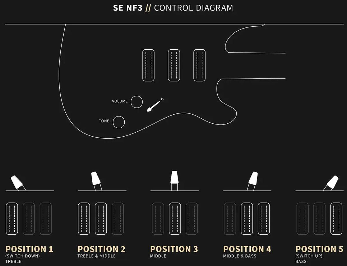 Supporting these pickups is a poplar body, 22-fret bolt-on maple neck, and a rosewood or Maple fretboard. The SE NF3 is a versatile workhorse guitar that is fun to play and hard to put down.