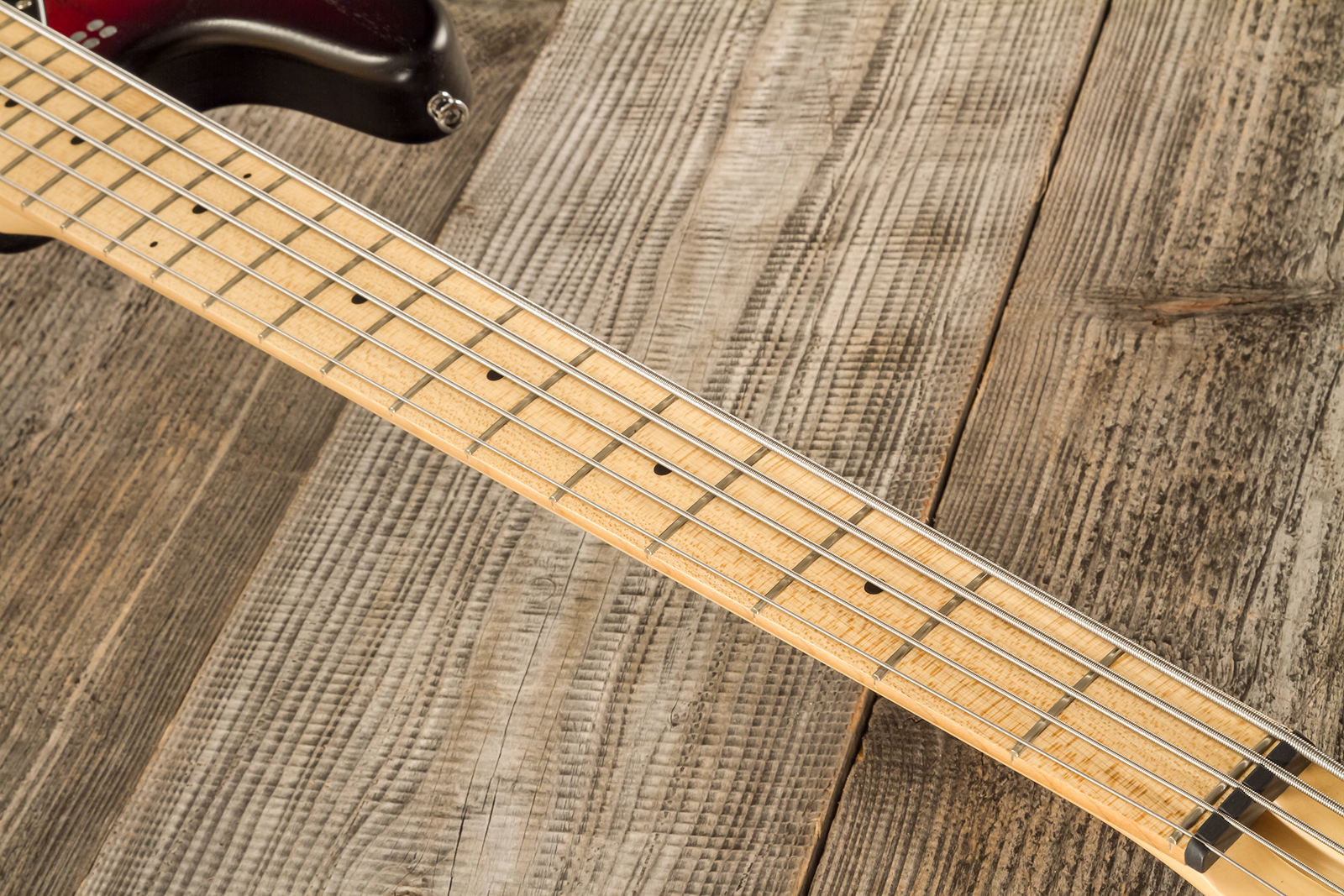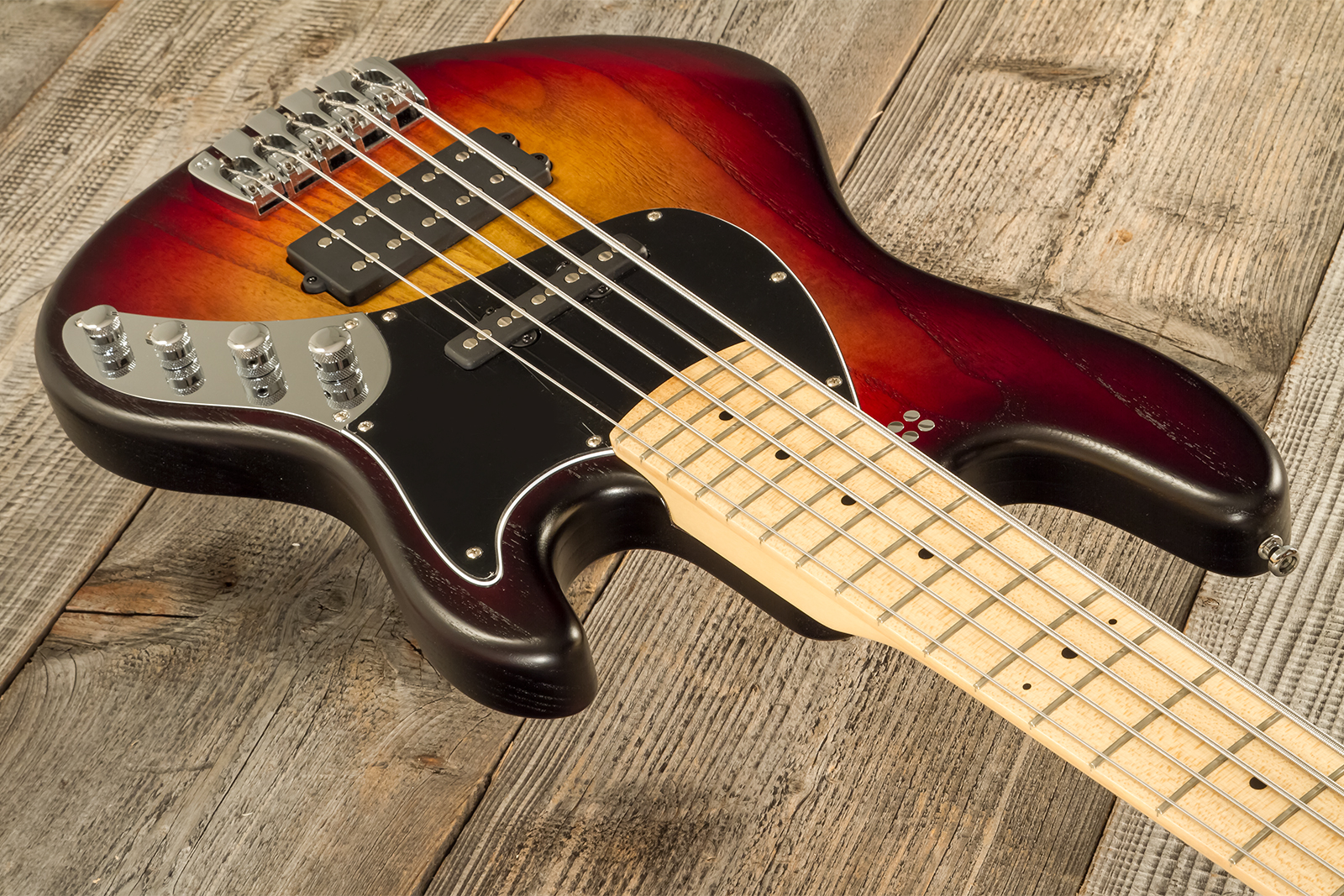 - 5x string solid body electric bass with active/passive electronics