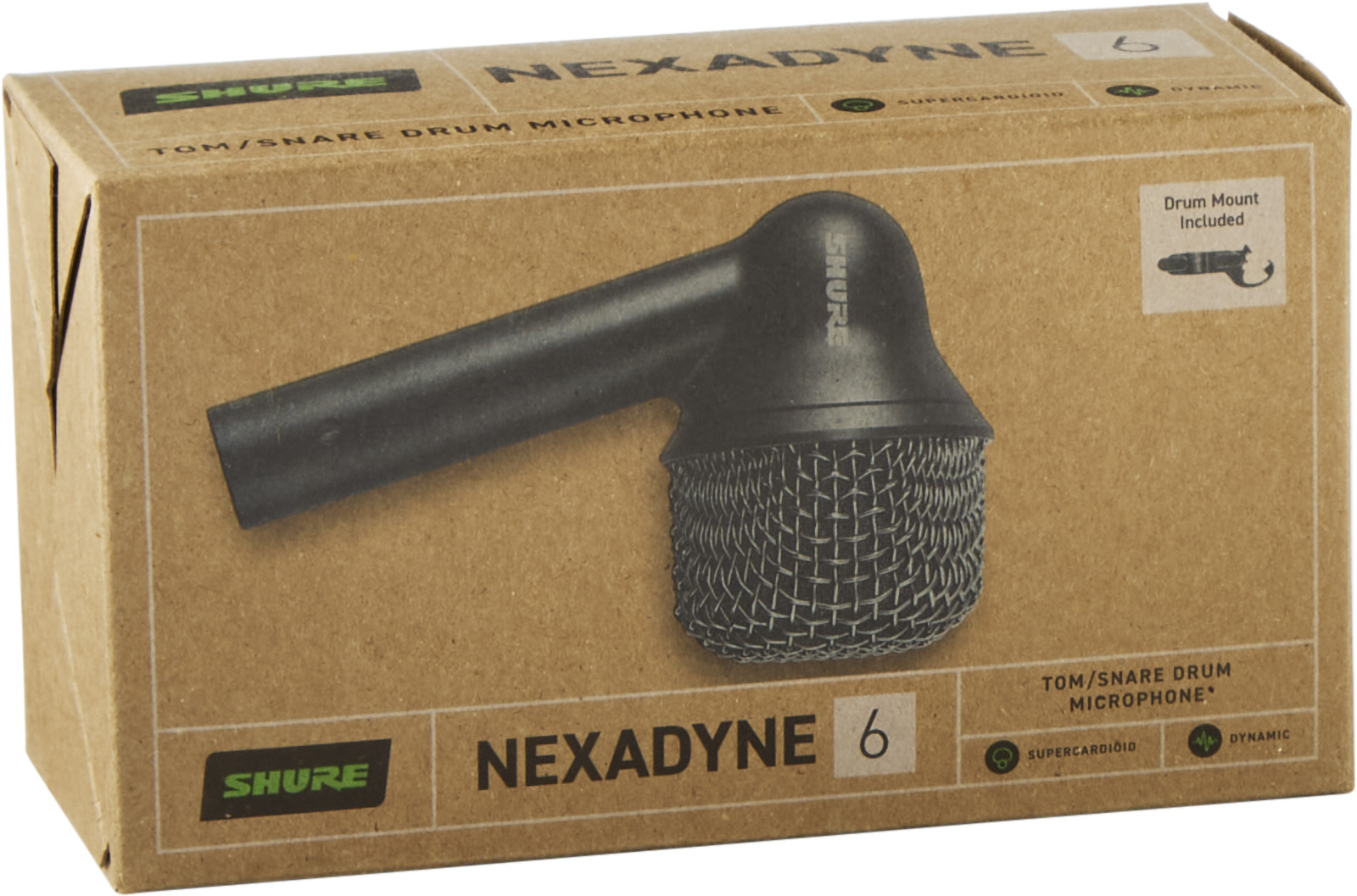 The Nexadyne6 is a supercardioid dynamic microphone designed for toms and snare drums, offering incredibly clear and accurate sound reproduction, while reducing the need for corrective equalization. It benefits from Shure's legendary manufacturing quality, in the service of innovation.