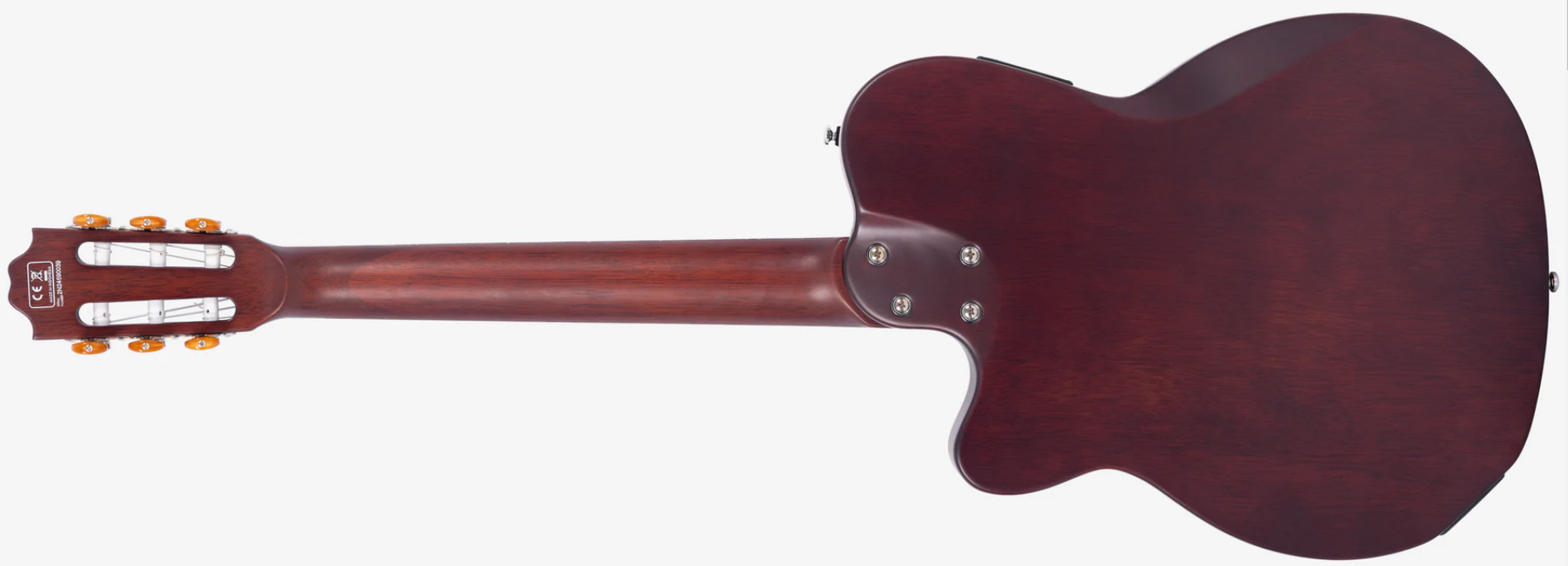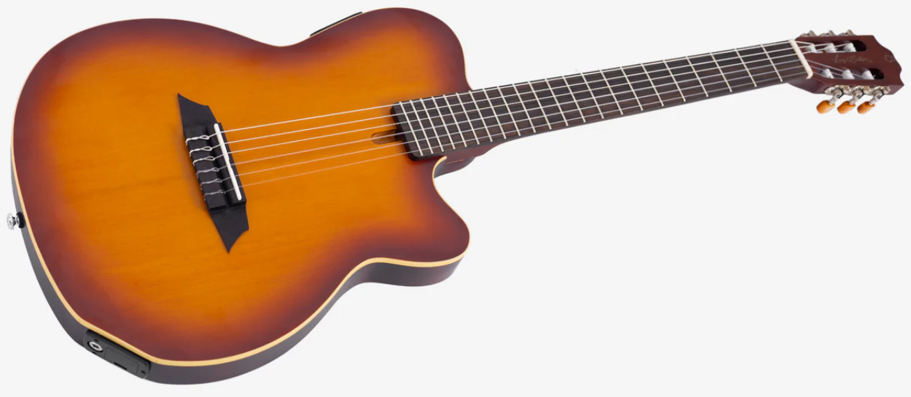 SIRE Larry Carlton G5N (Tobacco Sunburst Satin) shares the concept with G5A but focused on delivering a classic guitar sound instead of an acoustic guitar sound. With a neck width ideal for a classical guitar and nylon strings, it reproduces the sound of a classical guitar without feedback in live situations, offering a sophisticated and smooth sound.