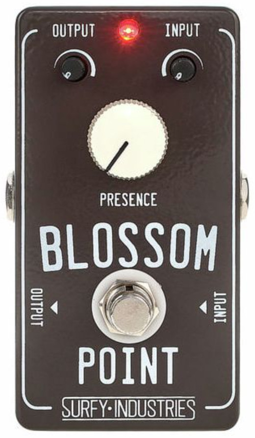 The SURFY INDUSTRIES Blossom Point compacte effect pedal emulates the special "fat effect" that is obtained by pushing the tubes and the volume of a brownface Fender® Showman® just before distortion. It finds that "sweet spot" (that Dick Dale was calling the "blossom point") of maximum tube compression that changes the entire sound - from its power to the sustain of the guitar and the reverb.