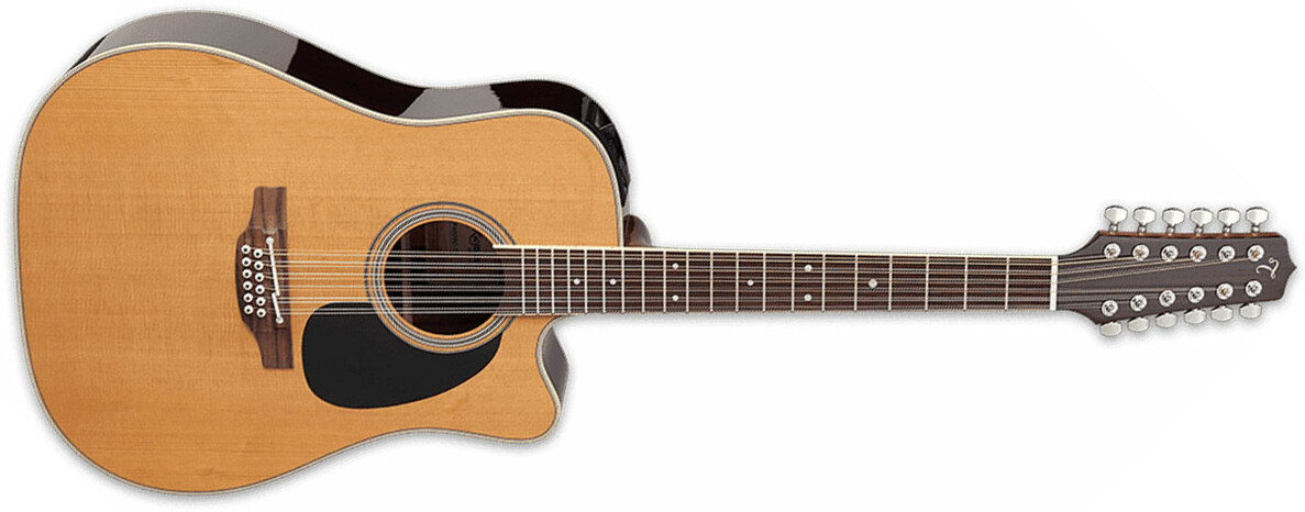 This TAKAMINE EF400SC TT acoustic/electric 12-string guitar, with solid Spruce top and solid Rosewood back, is a cutaway dreadnought which incorporates Takamine's "Thermal Top" technology giving the musician the desired sound of a played-in vintage instrument in a new guitar with modern amenities, such as a slender neck, and exceptional CT4B II electronics. Simple and elegant, this is truly a working guitar--ready for any stage.
