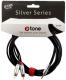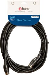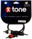 The X-Tone X1015-1,5M cable is 1,5 meter long and consists of 1 stereo 3,5 jack plug molded to 2 molded RCA plugs.