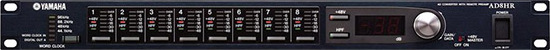 The Yamaha AD8HR interface is a 8-channel 24-bit converter. The gain of the AD8HR's microphone preamplifiers can be remotely controlled in steps of 1 dB from digital mixing consoles such as the DM2000 and DM1000. It provides a digital connection between the AD8HR and digital mixing console via an AES/EBU cable, that reduces the need for analog wiring to an absolute minimum, keeping sound quality deterioration in check and simplifying wiring layout. Each of the rear panel's eight inputs features an XLR connector, and a pair of D-sub 25-pin AES/EBU digital output terminals are standard. BNC terminals provide word clock input and output. The AD8HR covers every base in terms of digital connectivity.